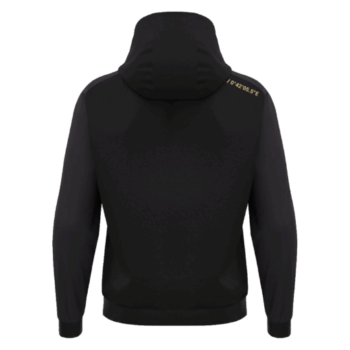 Hoodie made from Poly Dry as the main fabric and Poly Fleece for the sleeves, ensuring a comfortable fit and warmth. The hood, with a mesh inner lining, features a rounded drawstring with plastic stoppers and metal eyelets for practical adjustments. The ribbed cuffs and waistband provide a secure and comfortable fit.